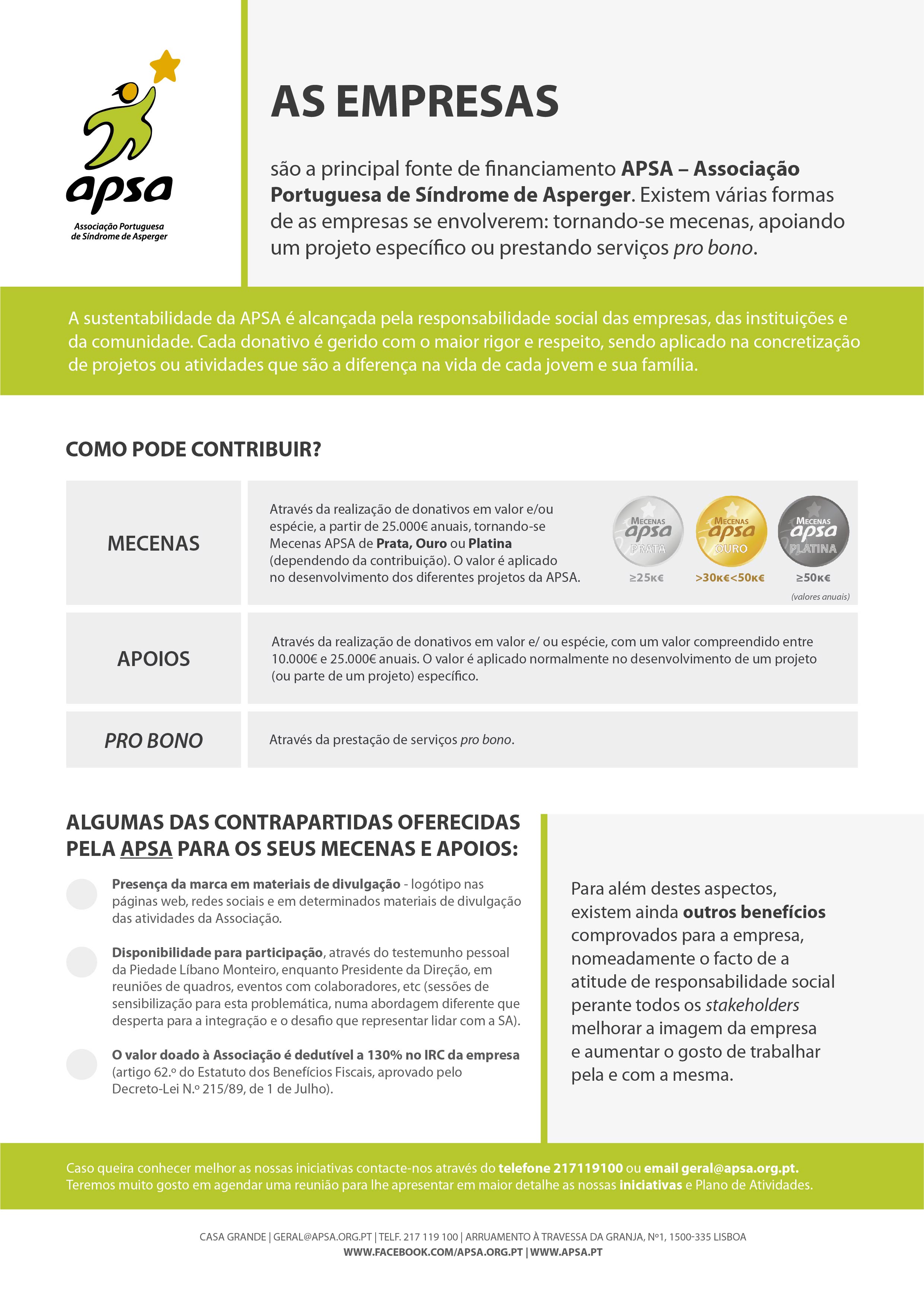 If you would like to know more about our initiatives, please contact us by phone 21 711 91 00 or email from our communication and fundraising department davidmg@apsa.org.pt