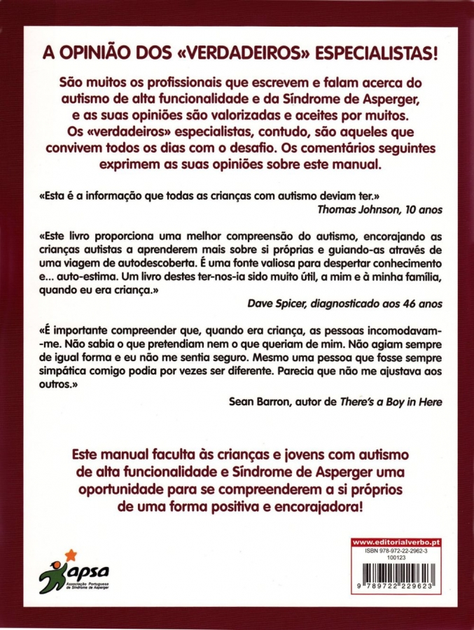 Este manual faculta às crianças e jovens com autismo de alta funcionalidade e Síndrome de Asperger uma oportunidade para se compreenderem a si próprios de uma forma positiva e encorajadora!