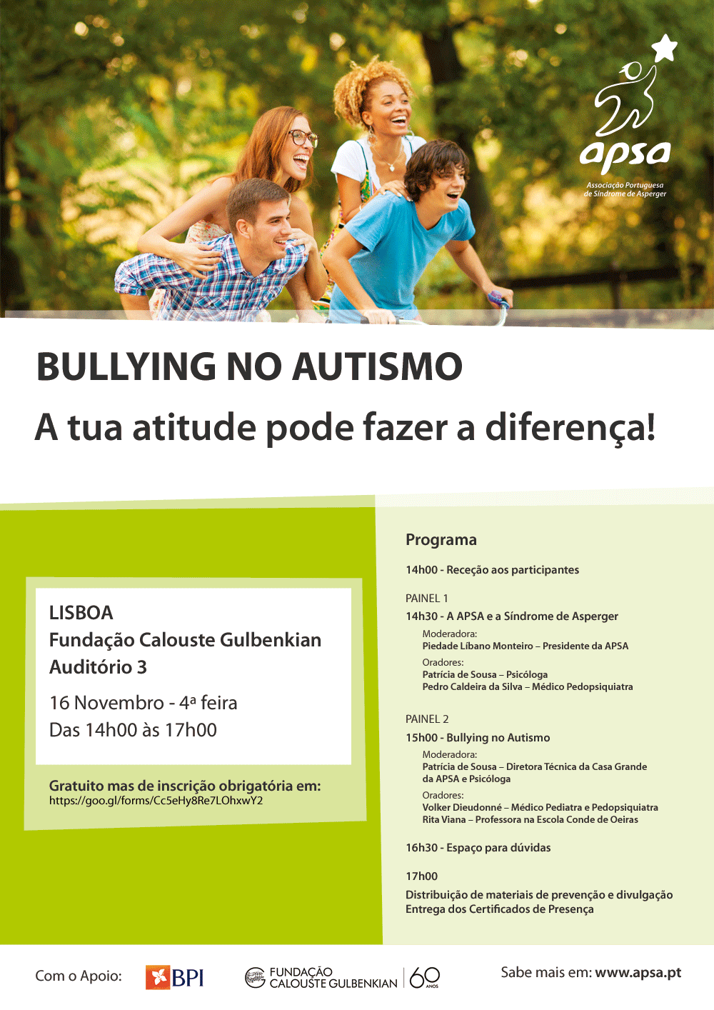 Todos os recursos desenvolvidos e informação adicional sobre o projeto estão acessíveis no link: http://www.apsa.org.pt/sindrome-de-asperger/bullying-no-autismo. As infografias podem ser obtidas em: http://www.apsa.org.pt/sindrome-de-asperger/infografias